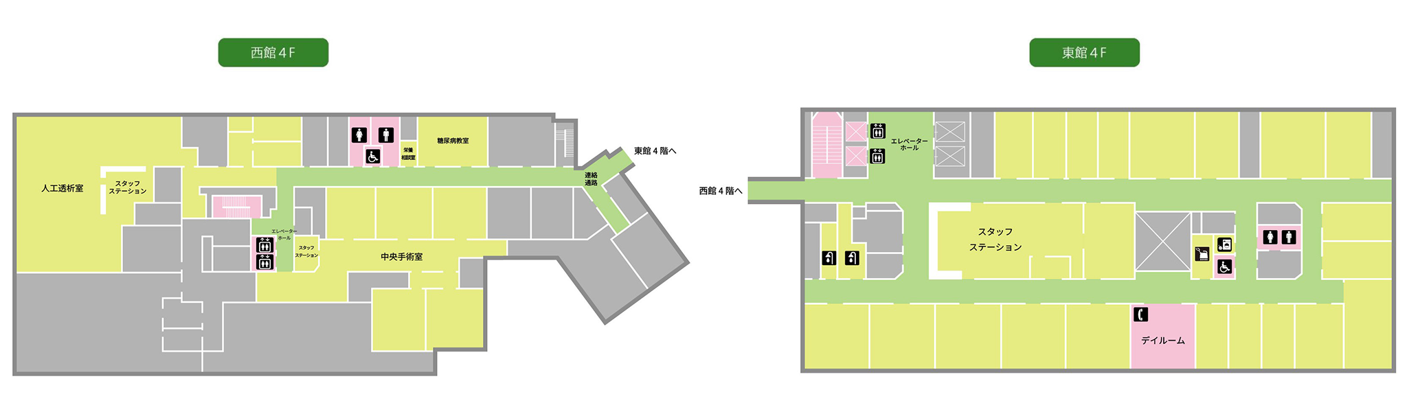 - 連絡通路は、東館と西館の2、3、4階のみ通じています。