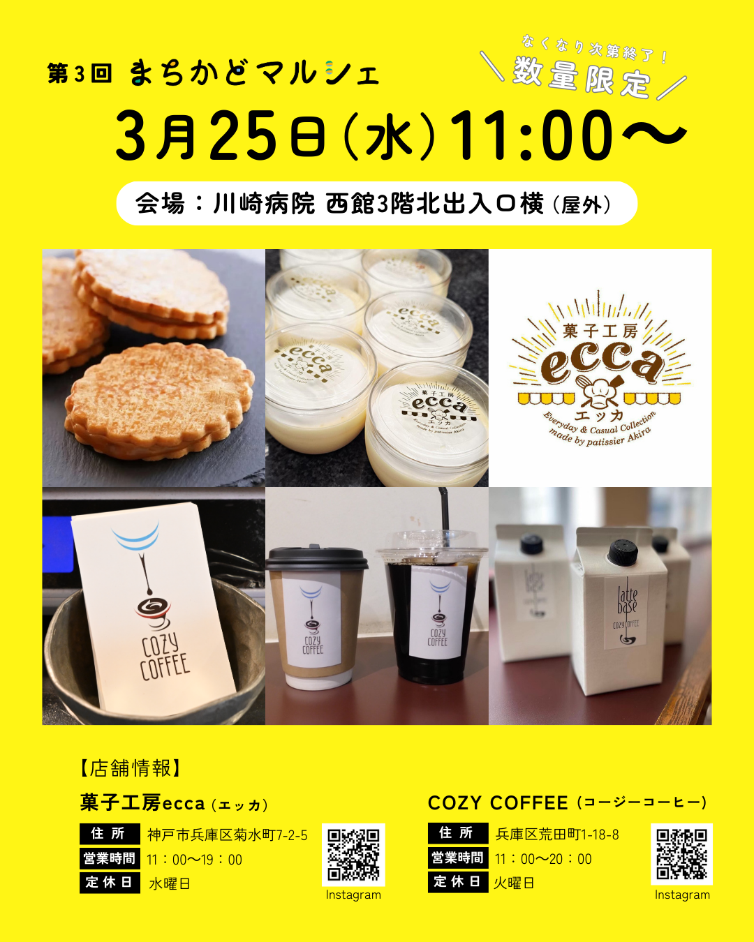 【3/25(水)11:00-】第3回「まちかどマルシェ」開催のお知らせ<出店:「COZY COFFEE」/「菓子工房ecca(エッカ)」>
