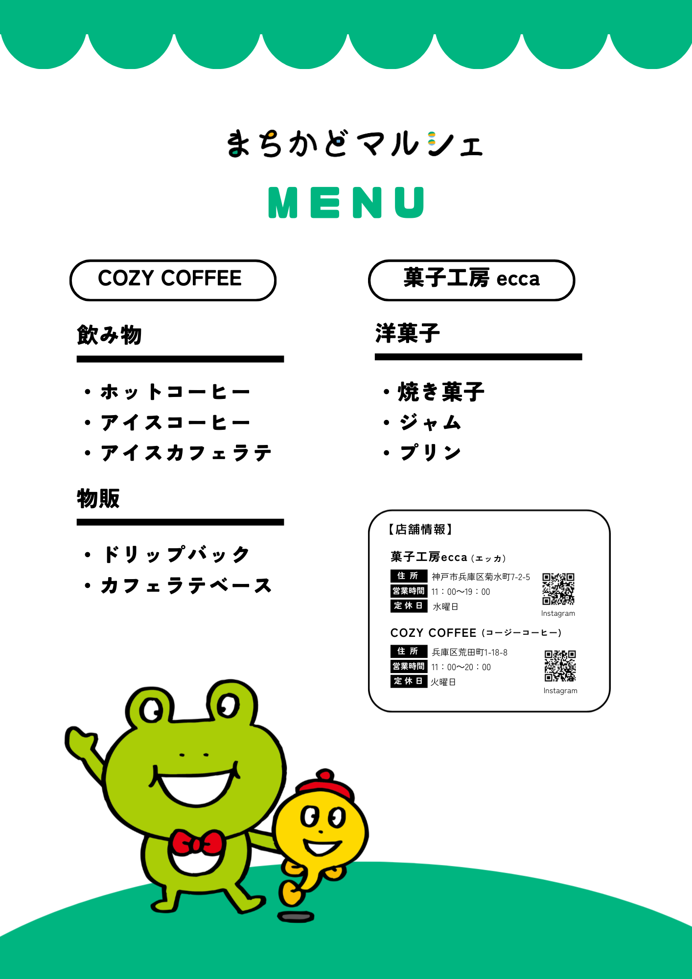 今回のまちかどマルシェは、地元で大人気の「COZY COFFEE(コージーコーヒー)」さんと「菓子工房 ecca(エッカ)」さんが登場!
